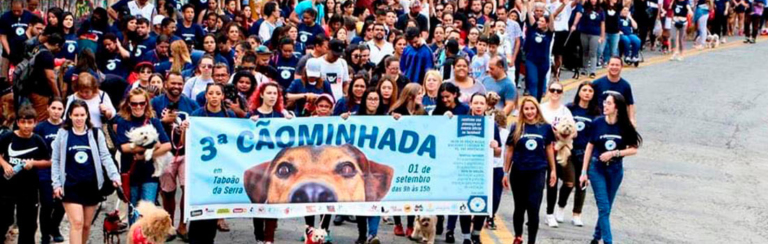 Dia 18 de setembro vamos realizar a 4ª Cãominhada em Taboão da Serra, um evento criado para divulgar a posse responsável, o bem-estar animal e marchar contra os maus tratos.