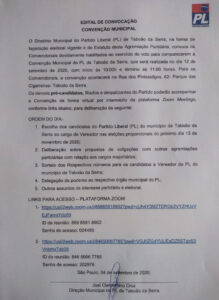 Taboão da Serra Edital de convocação para convenção municipal do Partido Liberal de Taboão da Serra Por O TABOANENSE • 07/09/2020 Ler mais