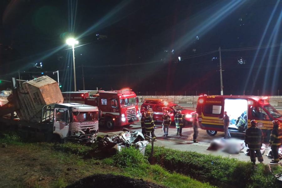 Acidente grave entre carro e caminhão na Av. Taboão da Serra deixa quatro mortos na madrugada desta quinta