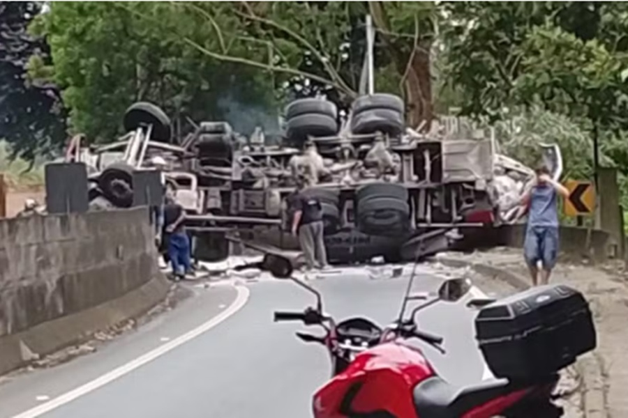 Betoneira tomba sobre carro e mata duas pessoas na rodovia Prefeito Bento Rotger Domingues, em Itapecerica da Serra