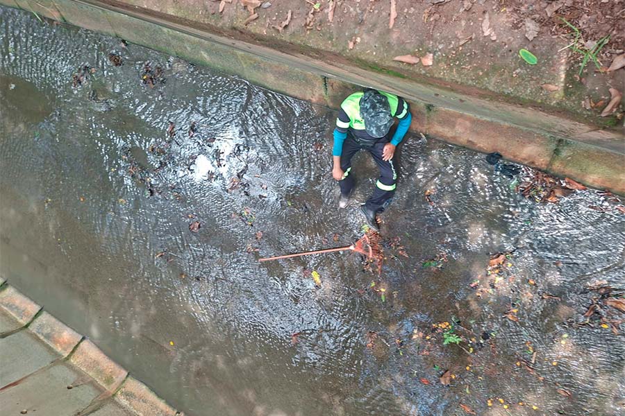Funcionário da limpeza urbana cai em córrego no Jd. Salete e é socorrido pelo Corpo de Bombeiros em Taboão da Serra