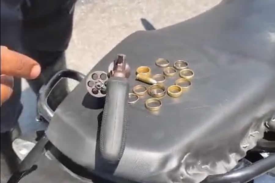 Durante a abordagem, os agentes encontraram com o suspeito um revólver calibre 32 com numeração raspada, uma munição intacta e doze alianças. A motocicleta utilizada pelo homem também apresentava placa adulterada, segundo informações da Secretaria Municipal de Segurança Pública.