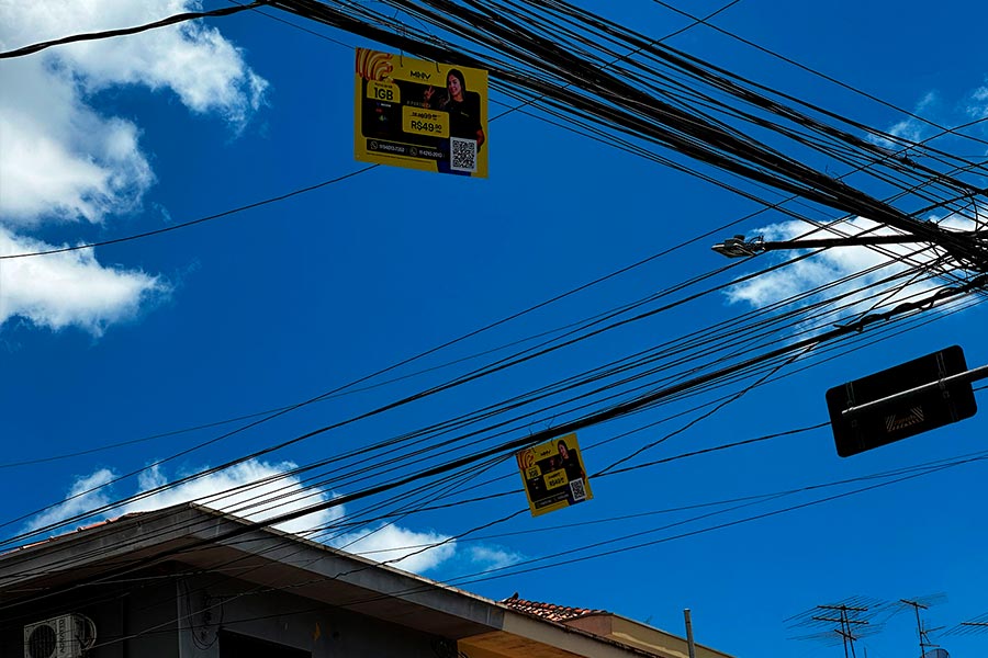 Mov Telecom espalha propaganda irregular em fios e é multada pela Prefeitura de Taboão da Serra