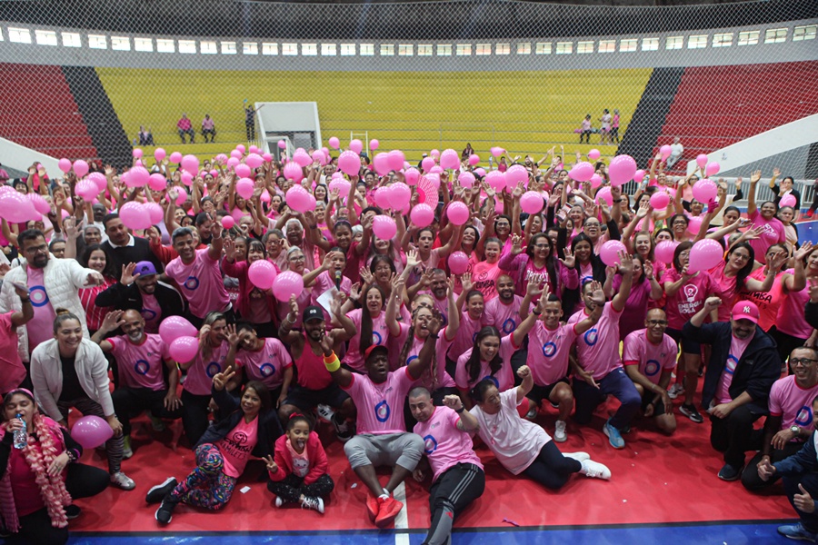 Evento no Ginásio Ayrton Senna reuniu moradores em uma manhã de atividades físicas, alegria e conscientização sobre o câncer de mama
